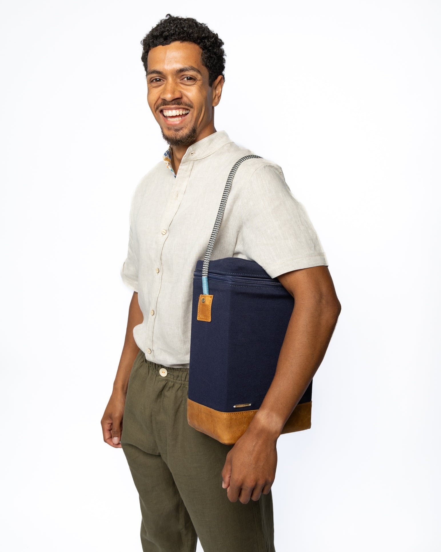 Named after one of Africa’s most powerful animals, the Nare is crafted from thick, full-grain buffalo leather lined with a beautiful dark green shweshwe.